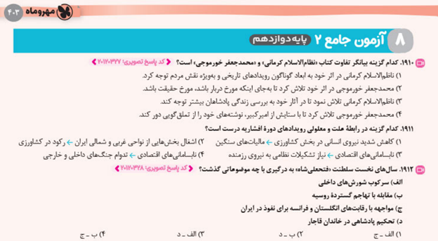 استفاده از سوالات تالیفی و کنکوری کتاب جامع تاریخ مهروماه