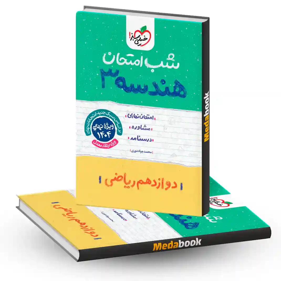 کتاب هندسه دوازدهم شب امتحان خیلی سبز همانطور که از اسمش مشخصه از سری کتاب های شب امتحان انتشارات خیلی سبز هستش این کتاب توسط آقای محمد جواد نوری نوشته شده و یکی از بهترین کتاب های کمک درسی ویژه امتحانات نهایی محسوب میشه. این کتاب شامل ۵۳ صفحه ست و مثل تمامی کتاب های شب امتحان آزمون ، پاسخنامه تشریحی و درسنامه داره و باعث شده در کنار کم حجم بودن کتاب کاملی رو داشته باشیم. که به تمامی زوایای درس هندسه پرداخته.