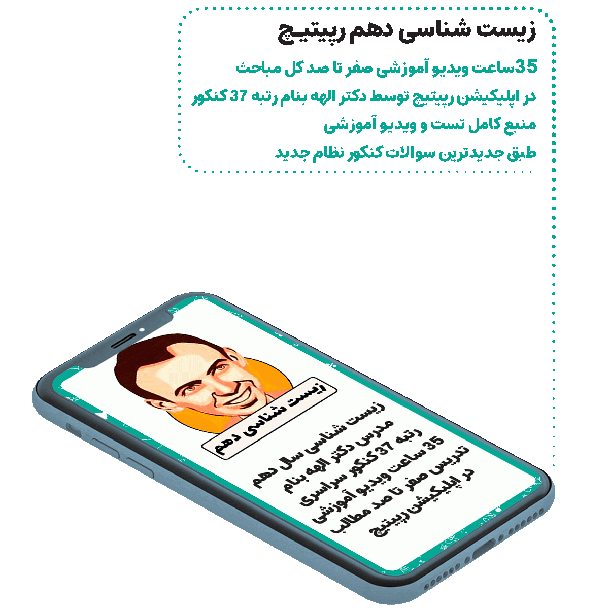 - کل زیست دهم (بجز گیاهی) رو با ویدیو بهت آموزش میده فقط ظرف 35 ساعت