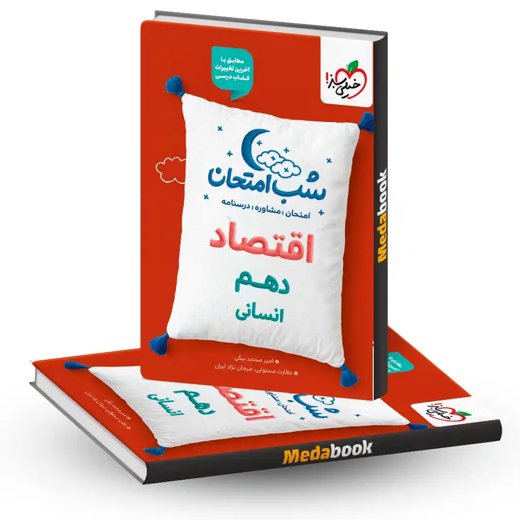 این کتاب از مجموعه کتاب های شب امتحان خیلی سبز هستش و توسط آقای امیر محمد بیگی که یکی از اساتید بنام پس اقتصاد هستن نوشته شده. شب امتحان اقتصاد دهم همونطور که گفتیم حجم نسبتاً کمی داره و تنها 48 صفحه داره و مثل سایر کتاب های این مجموعه از سه بخش اصلی آزمون ، درسنامه و پاسخنامه تشریحی تشکیل شده که در عین کم حجمی ازش کتابی کاربردی و و مفید میسازه.
