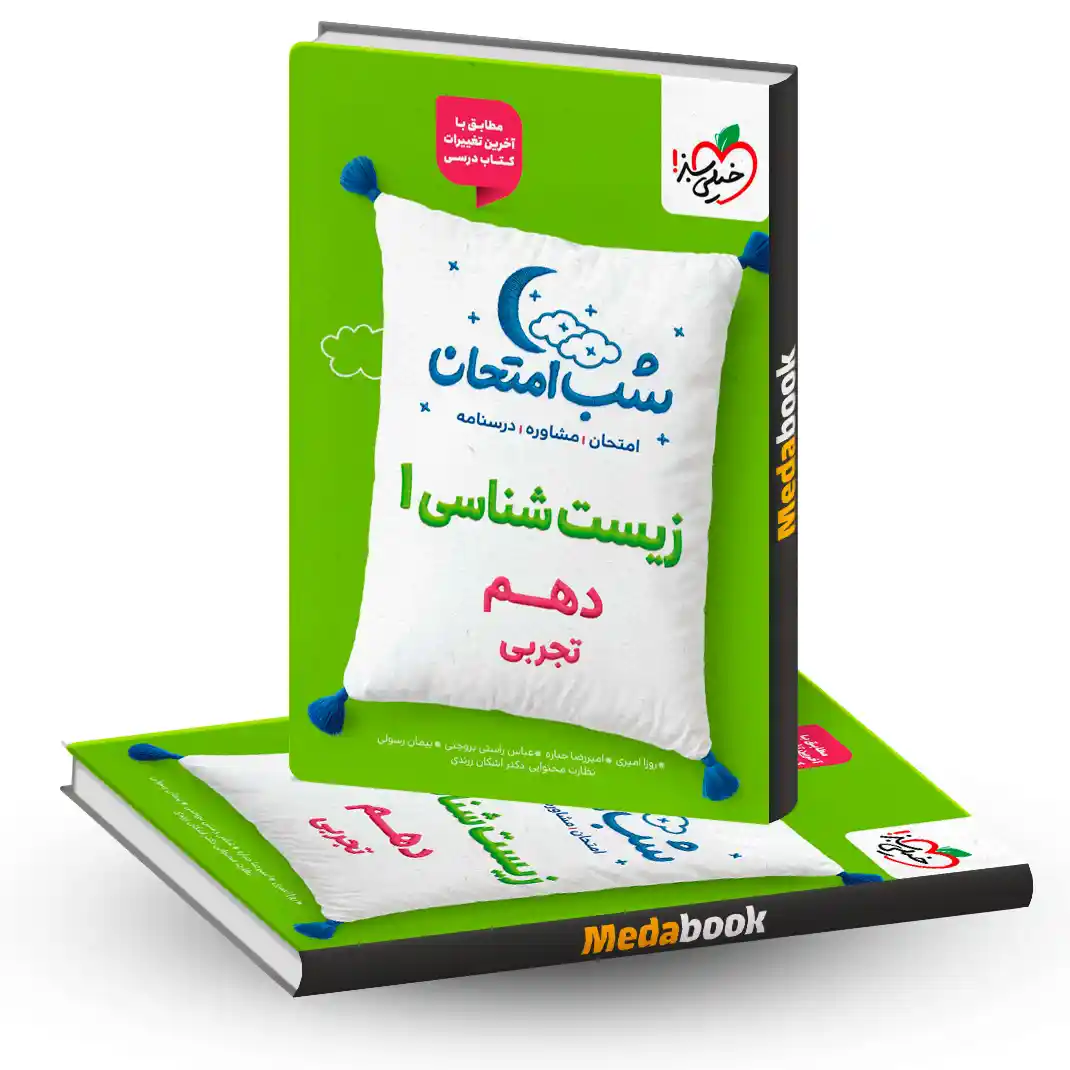 زیست شب امتحان دهم خیلی سبز یک کتاب مناسب ویژه امتحانات نهاییه که دانش آموزا رو برای امتحان زیست دهم آماده میکنه. این کتابِ نسبتا کم حجم برای تمام دانش آموزایی که تو مقطع دهم تجربی تحصیل میکنن مناسبه و سطح بندی کتاب به گونه ای هستش که هم دانش آموزان ضعیف و هم قوی بتونن از کتاب نهایت بهره رو ببرن و تو امتحان نوبت اول و دوم بهترین نمرات رو کسب کنن. هر دانش آموزی که به دنبال منبع کاملی از سوالات و آزمون های تشریحی و امتحانی زیست دهم هستش میتونه این کتاب رو تهیه کنه. شب امتحان زیست شناسی با داشتن سوالات متعدد نوبت اول و دوم، پاسخنامه تشریحی مناسب و موشکافی شده و درنهایت درسنامه ای کامل اما خلاصه میتونه بهترین گزینه برای دوران امتحان هستش و میتونید از این کتاب با خیال راحت استفاده کنید.