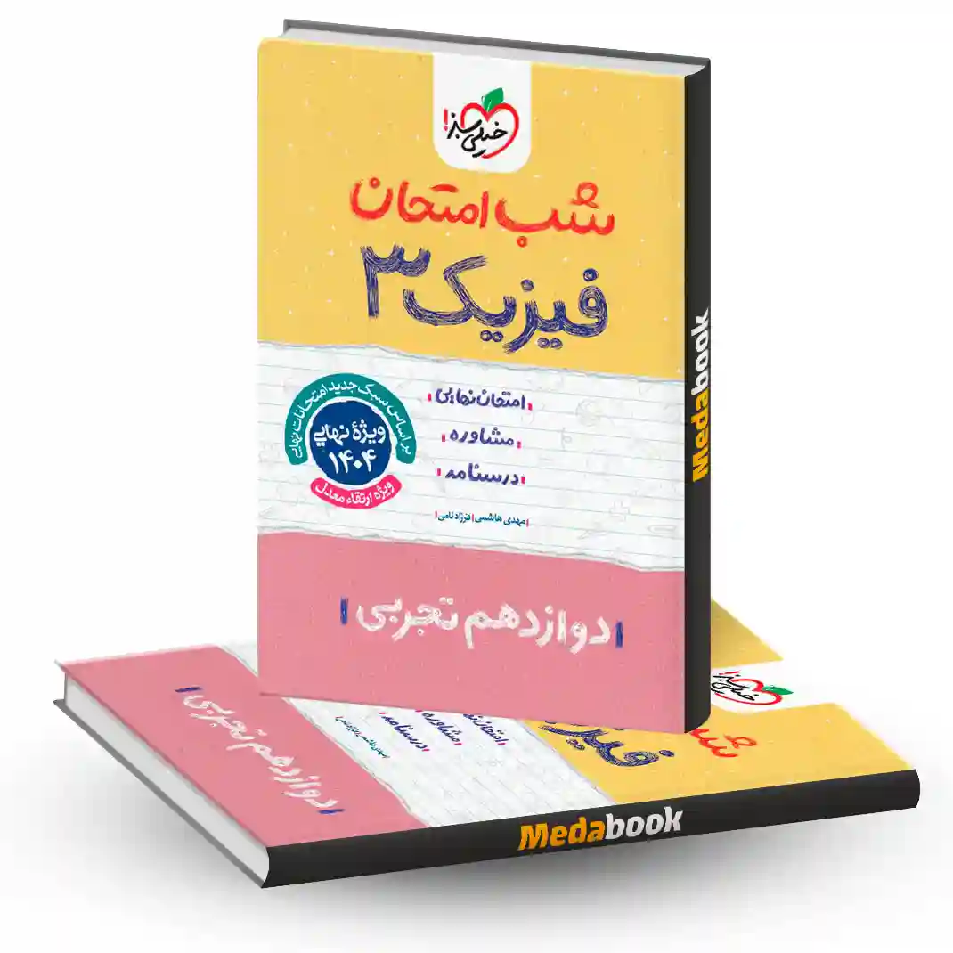 اما کتاب شب امتحان فیزیک دوازدهم تجربی خیلی سبز هم یکی از کتاب های این مجموعه محسوب میشه که توسط آقایان مهدی هاشمی و فرزاد نامی در 62 صحفه تالیف و گردآوری شده. این کتاب از چهار بخش آزمون های نوبت اول و دوم، مشاوره، پاسخنامه تشریحی و درسنامه تشکیل شده و با توجه به حجم کمی که دارد و همچنین کامل بودن مطالب، بسیار مفید برای دوران مرور و جمع بندی درس فیزیک است.